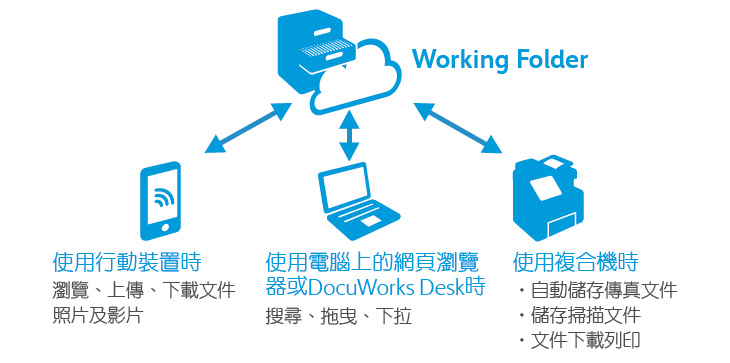 • 行動及雲(yún)端整合運用 支援Google雲(yún)端列印及AirPrint行動列印,下載Fuji XeroxPrint Utility 應(yīng)用程式除列印外,更可經(jīng)由無線網(wǎng)路將書面文件掃描至行動裝置上。透過Working Folder選購功能(富士全錄雲(yún)端服務(wù)),經(jīng)安全性及權(quán)限控管,授權(quán)使用者儘管不在公司內(nèi),亦可連上網(wǎng)路,將文件掃描上傳、下載傳真、或列印檔案至辦公室內(nèi)的複合機。